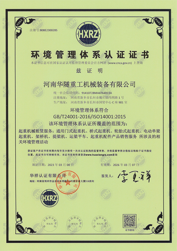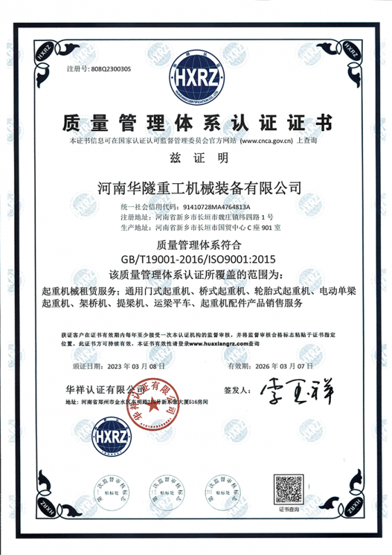 河南華隧重工機械裝備有限公司主要從事通用門式起重機、橋式起重機、電動單梁起重機,輪胎式起重機、架橋機、提梁機、遠梁平車、鋼絲繩電動萌蘆、卷揚機、起重配件制造、銷售:起重機械租賃、安裝和維修,起重設備園收,機械設備維修,鋼結構工程承包,橋梁工程及技術咨淘服務,銷售五金制品、機電設備:建設工程監理,建設工程設計,各類工程建設活動,建筑勞務分包,建筑物折除作業,施工作業,工程管理服務,土石方工程施工,裝如發運?! 」疽淹ㄟ^IS0國際質量、環境、健康與安全三合一標準認證,特種設備制造許可證和特種設備安裝改造維修許可證。擁有完熟的質量管理體系。嚴格的管理制度,強大的生產能力和先進的檢測手段,在保證產品質量的同時,也具備了極強的市場競爭力?! 」緢猿挚萍紕撔聻槔砟睿a品質量為核心,注重信譽,建立了減信可靠、快捷、思速。便利周到的售后服務網絡。  我們擁有的技術專家和技術服務隊伍為客戶提供充善的售前技術支持和全天候的售后服務體系,讓您無后顧之憂,享受一站式的超值服務。  “華隧重工,伴您成功“是華隧重工永遠的宗指,真被的希望與各界朋友攜手并進。共創輝準!